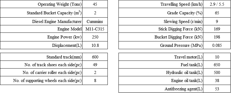 Weight: 45T Bucket capacity: 2.0m3