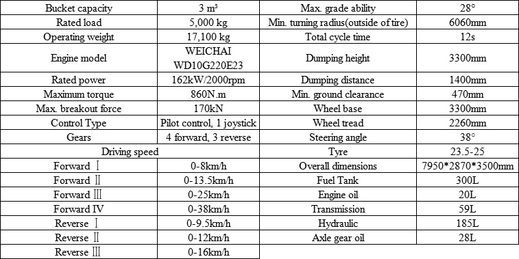 Rated load: 5000kg Bucket Capacity: 3.0m3