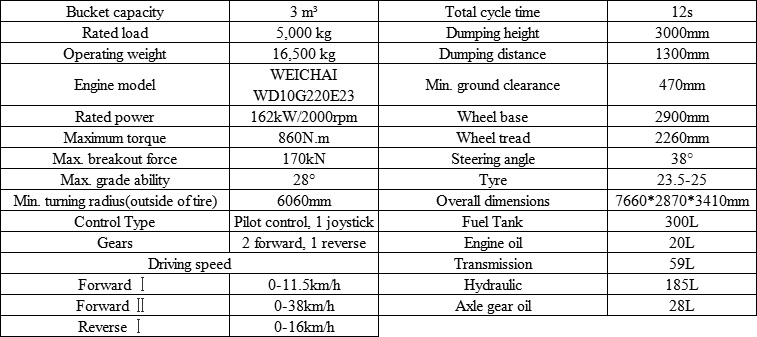 Rated load: 5000kg Bucket Capacity: 3.0m3