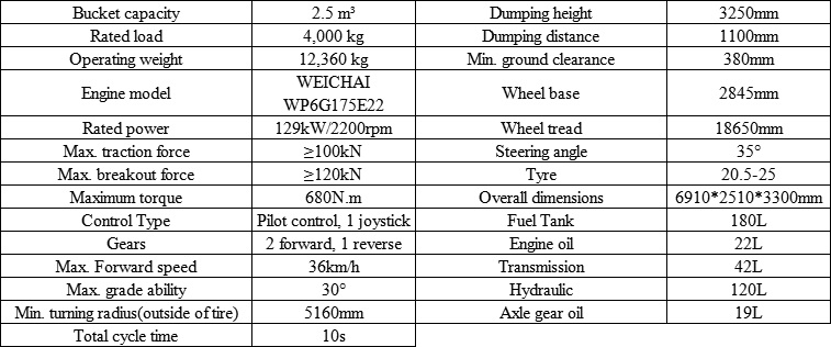 Rated load: 4000kg Bucket Capacity: 2.5m3