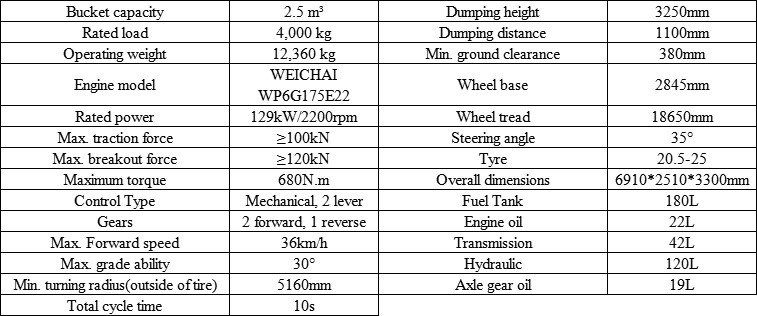 Rated load: 4000kg Bucket Capacity: 2.5m3