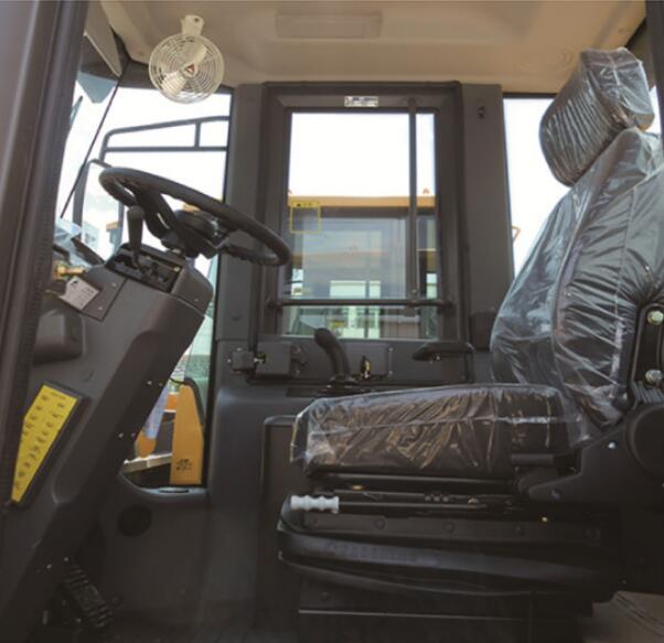 6.The cab is full decorated and with all around clear visibility and good seal. Three stage shock absorption system and new type shock absorption seat are adopted for better performance in shock absorption, which upgrades the comfort of operation.
