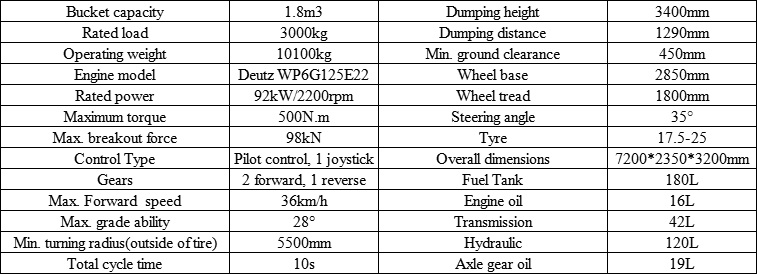 Rated load: 3000kg Bucket Capacity: 1.7m3