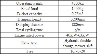 Rated load: 1500kg Bucket Capacity: 0.75m3