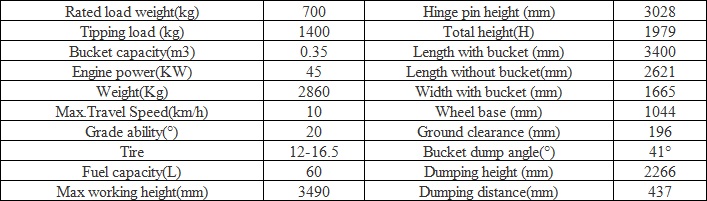 Weight: 2860kg Rated load weight: 700kg