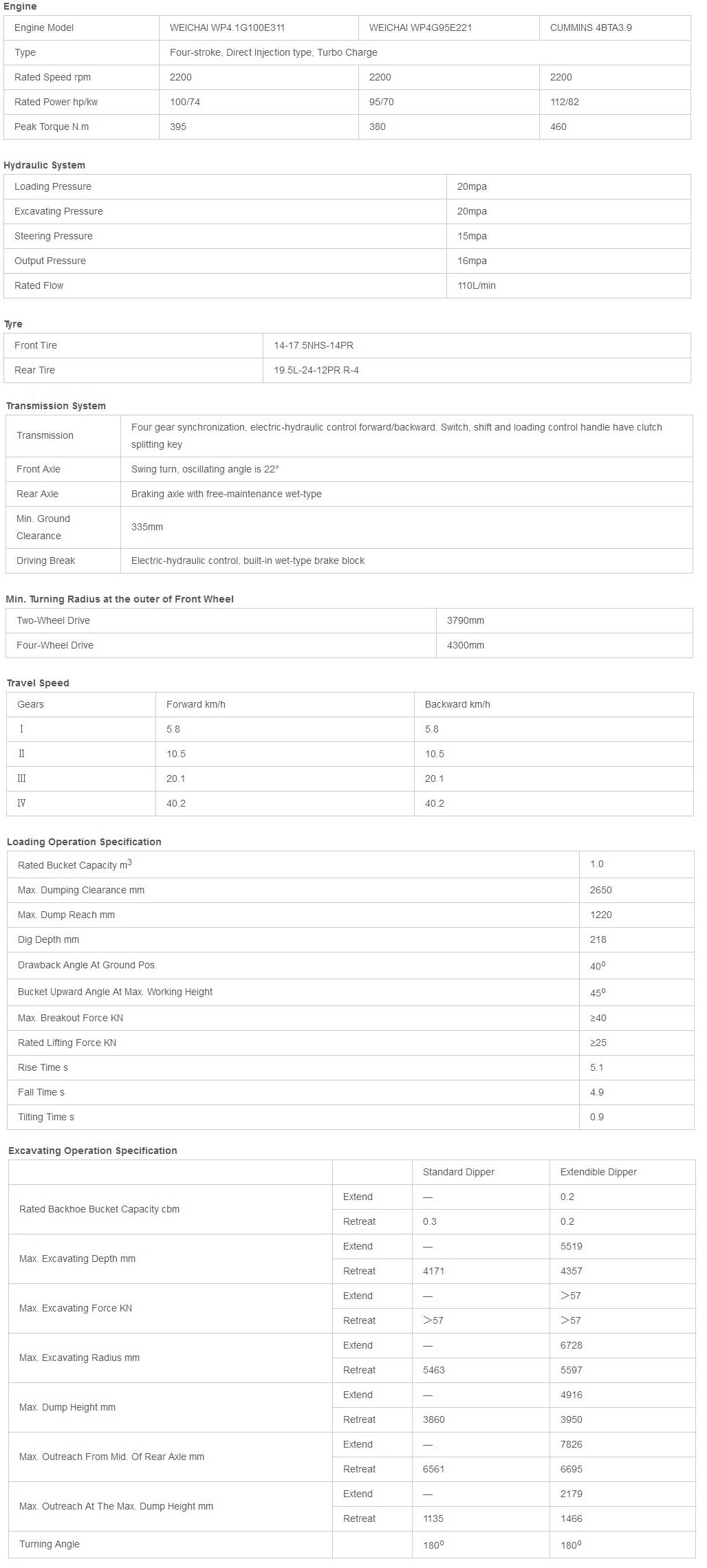 Load capacity:1.0m3 Backhoe capacity:0.2m3